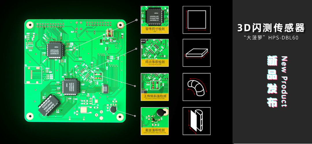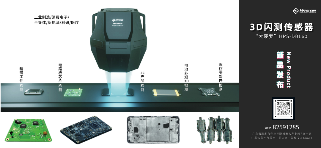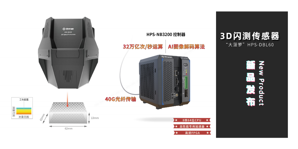 继去年4月发布的中国首台3D线光谱共焦传感器引发行业广泛关注后,2022年4月18日,海伯森在3D视觉检测领域再次发力,正式发布中国首台一体式3D闪测传感器——“大菠萝”HPS-DBL60。