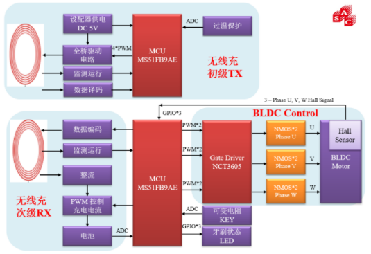 图示3-大联大品佳基于Nuvoton产品的电动牙刷无线充电+BLDC方案的方块图