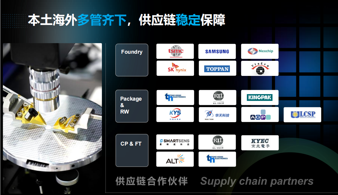 马总还指出,在缺货的2021年,思特威上半年也确实经历了一些挑战,但由于得到了来自国内外的多个代工厂的支持(见上图),以及封测厂的多供应商支持,上游供应问题很快解决。下半年缺货问题基本解决。