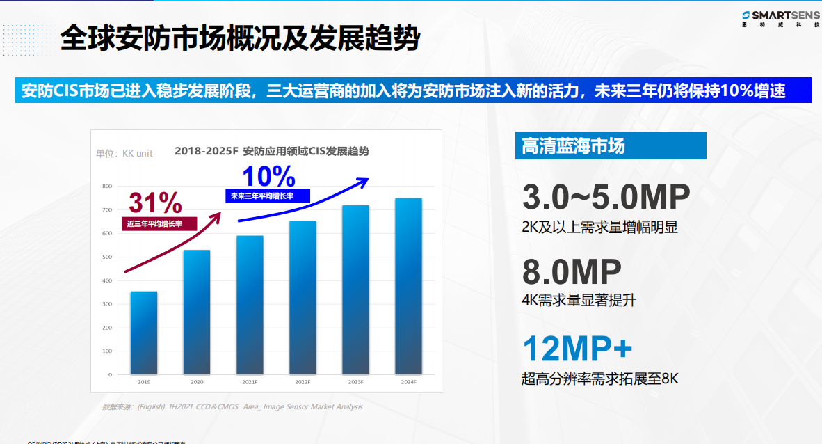 在高清安防监控的市场,2K及以上的需求将是蓝海一片。4K需求显著提升,8K超高清需求已经开始出现。