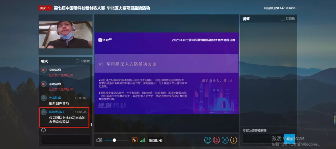 本环节结束后,结合项目现状及选手现场表现,评委组长王宇博做出专业点评,提出可行性建议。直播间现场互动积极、气氛热烈。