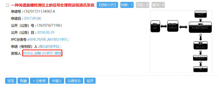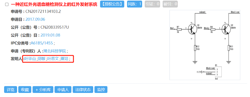 从下面三张国家知识产权局专利检索及分析官网关于三项专利的展示能够看出,叶华山和郑敏在三项专利中都是第一、二发明人。根据孟玉朋的爆料,以及经过湖北科技学院的证实,第三、四发明人叶思文和夏培是叶华山的亲戚。按照孟玉朋所述,叶思文是其侄女,夏培是其外甥。