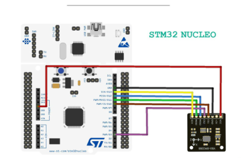 以下是NUCLEO-G070RB开发板与BMI088模块的连接方式: