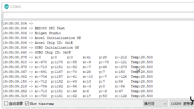 接下来,初始化BMI088传感器,设置加速计和陀螺仪的量程、带宽和工作模式等。然后使用以下函数读取BMI088的传感器数据: