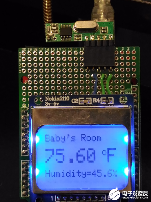本篇文章主要介绍了使用Arduino平台以及价格低廉且易于使用的ASK发送器/接收器模块,为孩子或婴儿房间安装一款DIY自制的无线温度和湿度监控器。在发送端,Arduino nano使用DHT22传感器感测室温和湿度,并通过433 MHz ASK RF链路将数据发送到接收端Arduino。接收方Arduino解码接收到的字节并将信息显示在LCD屏幕上。 RF传输的室内范围约为100英尺,这足以满足常见的室内面积。