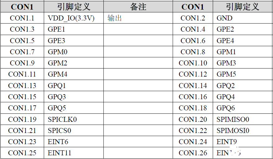 上图中说明了CON1的具体管脚名称是干嘛的。