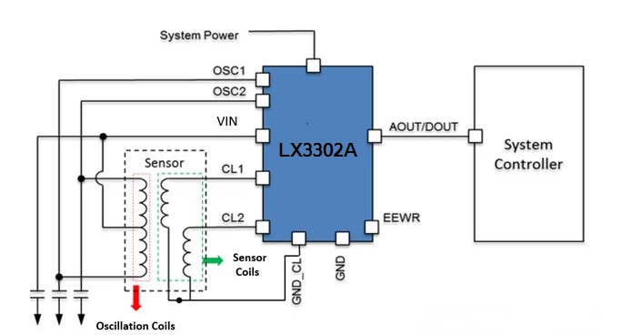 图1:LX3302A感应式位置传感器使用了更大的EEPROM,有助于实现八个校准点,以确保传感器测量精度。