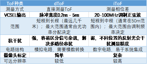 dToF和iToF对比 / 电子发烧友网整理