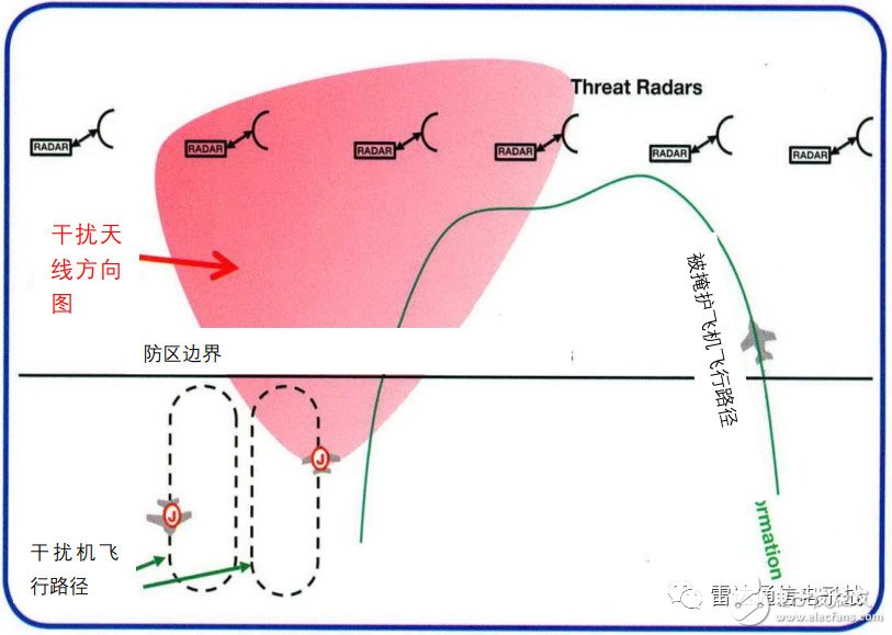 事实上,包括制导雷达在内的所有雷达都能被干扰,例如跟踪雷达、目标截获雷达和信息融合雷达等。通常,攻击机携带弹药进入雷达防区,而防区外部署有大功率的干扰机对攻击机进行支援式干扰。