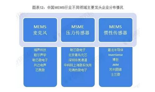 目前,在国内涉足MEMS的上市公司中,歌尔股份主要生产微麦克风、汉威电子生产流量传感器中的气体传感器,苏州固锝(002079)、士兰微等企业生产加速度传感器;而晶方科技、华天科技(002185)等则涉足MEMS芯片封装测试领域。