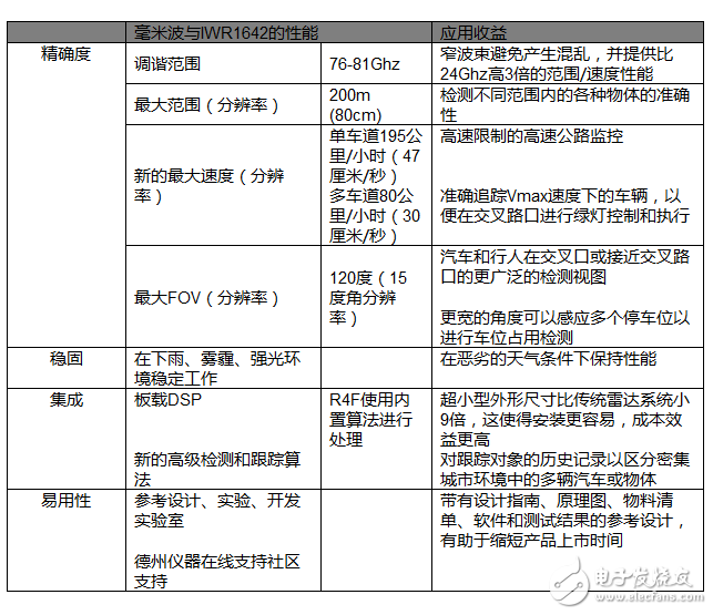 表1:TI的毫米波传感器为智能交通系统提供了优势