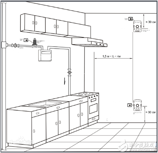 甲烷泄露报警器的正确安装方式:距离气源半径1.5米范围内,通风良好处: