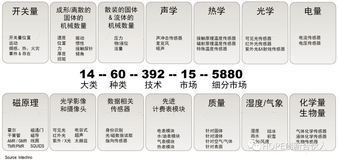 几百种基于不同技术的传感器,能够应用于不同的市场和应用场景,创造出成千上万的细分市场机会。目前与民用市场相关的应用领域涵盖医疗保健、家用电器和环境监测、智能城市、访问控制与疏散设备、新零售、智能农业、冷链运输、暖通制冷、智能机器等。
