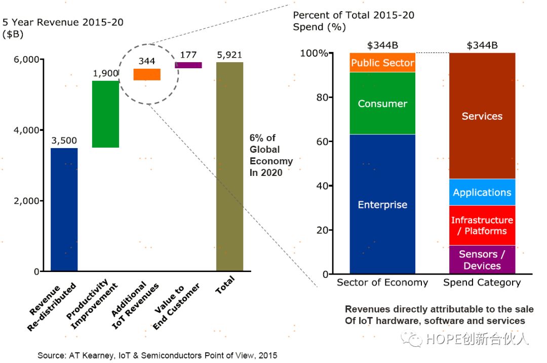 物联网的发展,将在2020年前,使得其相关的硬件,软件,及服务为整个半导体行业贡献额外的将近3440亿美元的巨大市场。