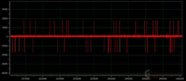 会发现陀螺仪的值会跳变(不同的倾角下跳变的概率不一样,更新频率越高,跳变的概率越大),由于陀螺仪在原始的寄存器值上乘以了70,将跳变值除以70后为+255和-255。