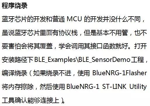 开发环境搭建请参考论坛帖子STEVAL-IDB007V1之透传演示操作流程和所需软件资源下载(http://bbs.eeworld.com.cn/thread-604229-1-1.html),从开始菜单进入BlueNRG-1 Navigator可以实际运行各种例程查看效果。