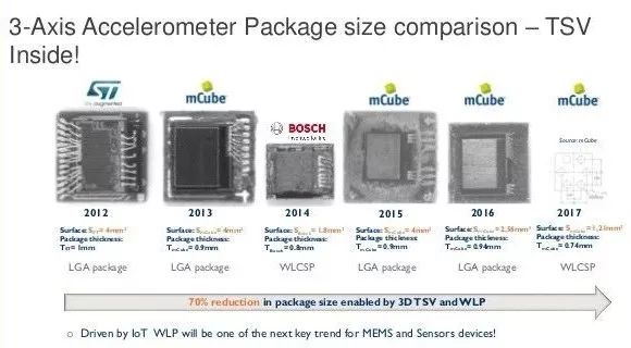 图12 Bosch公司开发的WLCSP封装的MEMS三轴加速度计