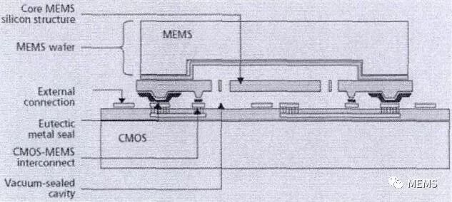 从上述两个例子可以发现,新键合工艺、芯片层叠、圆片级真空封装成为惯性MEMS器件尺寸减小、集成度提高的有效技术手段。值得注意的是,无论是芯片层叠、引线键合方式的还是MEMS专用IC圆片与惯性MEMS圆片/封帽三者圆片级键合集成的方式,MEMS专用ASIC芯片工艺制程/尺寸都需要兼顾考虑惯性MEMS结构设计,可以说MEMS专用ASIC芯片、惯性MEMS芯片及两者三维集成工艺是融为一体化的。