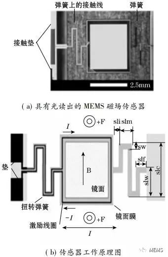 电容感测主要通过表面微加工工艺实现,并将所施加的磁场转换为电输出信号。该技术具有很小的温度依赖性,并允许电子电路与磁传感器制作在同一芯片上。通常,电容感应的传感器在大气压下具有高的空气阻尼,为避免它的影响需要对器件进行真空封装才能提高其灵敏度。利用光学敏感技术制备的传感器由于具有抗电磁干扰的特性,因此系统中所需要电路比电容和压阻敏感技术的少,可在恶劣环境中工作,表面和体微加工工艺均适用于这种传感技术的优点。