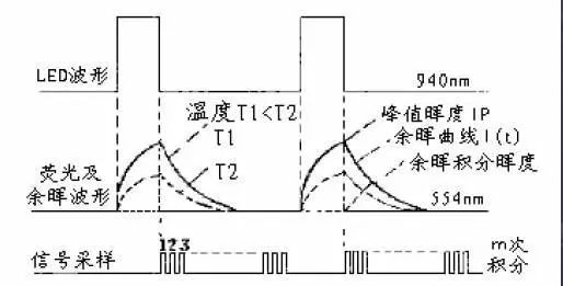 所谓光致发光是一种光发射现象,就是当材料由于受紫外、可见光或红外区的光激发,所产生的发光现象。出射的荧光参数与温度有一一对应关系,通过检测其荧光强度或荧光寿命来得到所需的温度的。