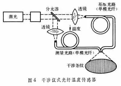 另外一种方法是利用光在光导纤维内传输的相位随温度参数的改变而改变的特点,光信号的相位随温度的变化是由于光纤材料的尺寸和折射率都随温度改变而引起的。