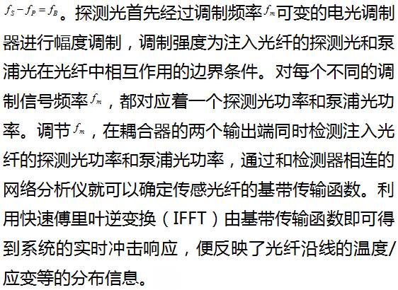 BOFDA分布式光纤传感技术是1997年德国D.Garus等人提出的一种新型的分布式光纤传感技术。