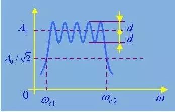 在一定频率范围内,实际滤波器的幅频特性可能呈波纹变化,其波动幅度d与幅频特性的平均值A0相比,越小越好,一般应远小于-3dB。