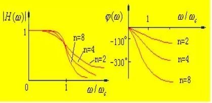 从幅频特性提出要求,而不考虑相频特性。巴特沃斯滤波器具有最大平坦幅度特性,其幅频响应表达式为: