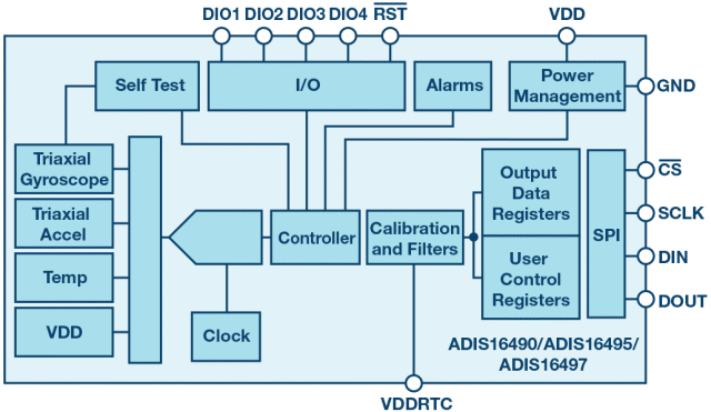 为了在动态环境中达到1°甚至0.1°的指向精度,设计人员的器件选择必须聚焦于传感器抑制温漂误差和振动影响的能力。传感器滤波和算法(传感器融合)虽然是提升性能的关键要素,但无法消除消费级与工业级传感器的差距。ADI公司新型工业IMU的性能接近于上一代导弹制导系统所用的产品。诸如ADIS1646x和已宣布的ADIS1647x等器件以标准和迷你IMU外形尺寸提供精密运动检测,打进过去的特殊应用领域。