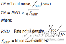 传感器固有噪声代表的是陀螺仪在静态惯性和环境条件下运行时其输出中的随机振动。MEMS IMU数据手册通常会提供速率噪声密度(RND)参数来描述陀螺仪相对于频率的固有噪声。此参数通常使用单位°/s/√Hz,是预测特定滤波器配置固有噪声的关键。这里的公式给出了一种简单方法来估算与特定频率响应(噪声带宽)和RND相关的噪声。