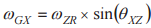 每个陀螺仪的对齐误差均具有两个分量,分别定义其相对于惯性参考系中另一个轴的对齐误差。例如,对于图2中的系统,θXZ代表x轴陀螺仪相对于z轴的对齐误差。此对齐误差定义有助于建立公式以计算离轴陀螺仪对系统惯性参考系中围绕另一个轴旋转运动的响应。公式中给出了一个示例,其量化了x 轴陀螺仪相对于z轴的对齐误差(θXZ)和围绕z轴旋转(ωZR)而产生的响应(ωGX)。