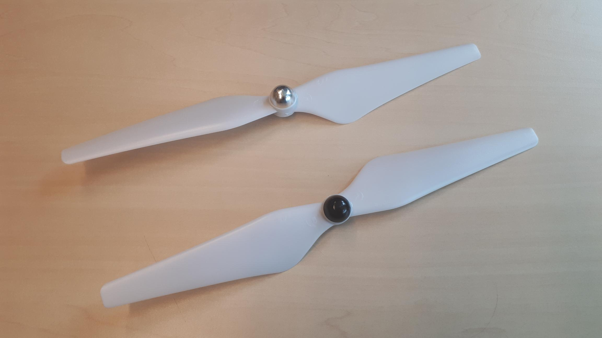 套件中还包括两个顺时针(CW)旋转螺旋桨和两个逆时针(CCW)螺旋桨。从螺旋桨的形状可以清楚地看出螺旋桨的预期方向。从侧面看,它向螺旋桨叶片的后部弯曲,前部是“首先穿过空气”的一侧。
