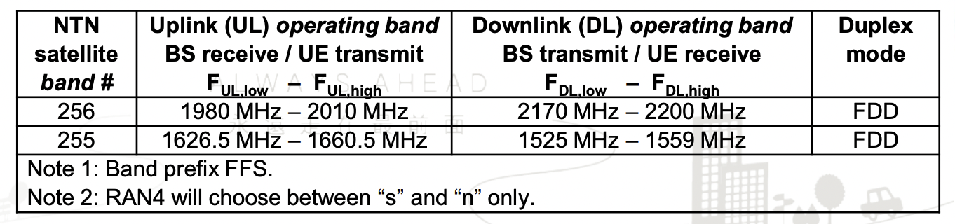 5G通信中确定的非地表网络通信波段 / 3GPP