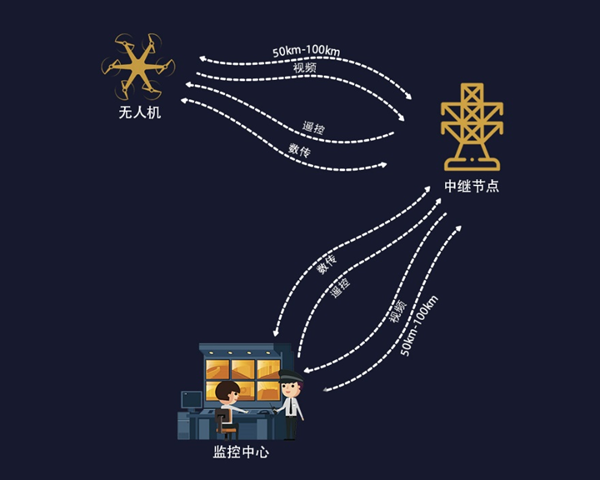高压电力输电线路是重要的能源基础设施,需要经常进行线路巡检,查看绝缘子污秽、可能出现的漏电等情况从而保证整个线路的安全、畅通。高压输电线通常输送距离长,经过河流、峡谷、山脉等各种复杂地形,人工巡检效率极其低下,在山区巡检还存在危险。采用在线路沿线布设无人机机库和自主飞行的无人机可以实现全线路无人机自动巡检,无人机在机库之间进行多跳飞行,自主起降完成充电。采用远传融创Sprintlink无人机通信图传,无人机可以在机库之间进行通信的无缝切换,从而保证无人机的安全自主飞行起降和数据的及时回传。