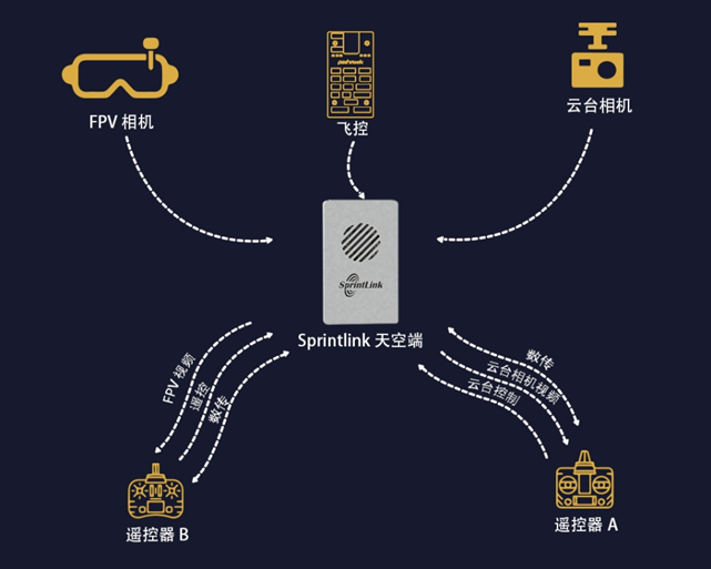 在无人机应用不断拓展的今天,点对点通信已经不能满足所有的使用场景。得益于系统的灵活性,远传融创sprintlink开发出专为无人机设计的点对多点组网方式用以实现多收,多跳,双控,中继等各种复杂传输需求。以下几个应用场景具象地展示了**远传融创***点对多点的各种方案。