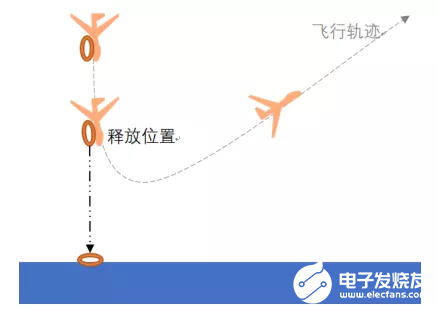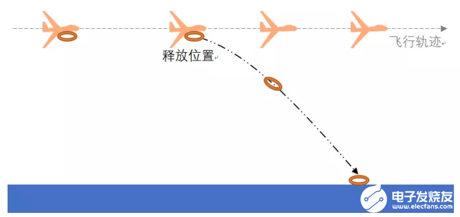 水平空投是指固定翼飞机在巡航高度保持与水面平行,在飞抵目标正上方之前,通过计算提前释放抛投物,使其沿着抛投轨迹自由下坠,最终落到预定目标位置。