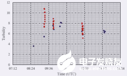 RedEdge-MX在苏格兰自然环境研究委员会(NERC)的FSF实验室,做了校准对比,确认其在光学范围内的灵敏度符合要求。在UAV飞行过程中,采取相机稍微倾斜,背对太阳,避免了太阳直射光的水面反射进入视场,尽可能避免了太阳闪烁的影响;GPS和DLS附件的增加,获取经纬度、飞行高度以及光变化的信息。在采用无人机多光谱每5秒钟获得浊度数据的同时,该研究团队也采用人工测量方式进行监测,以便后期数据对比。