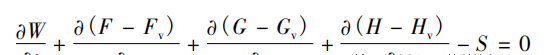 式中W,F,G,H为无黏通量、、为黏性通量S 为动量源项; t为用于数值计算时的虚拟时间、XYZ 为空间坐标。