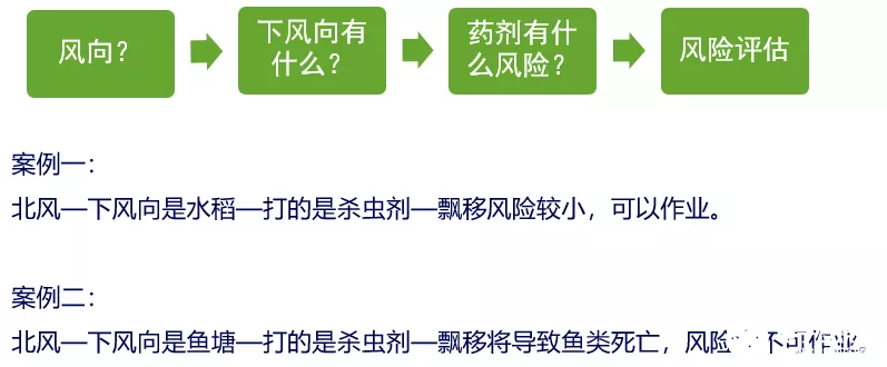 3.观察下风向作物类型,从而判断作业风险,如确实可能产生飘移药害,应禁止作业。