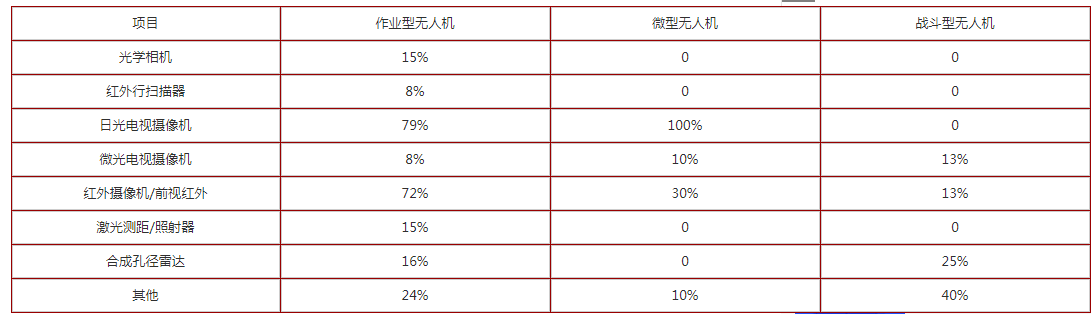 无人机的机载任务载荷是由无人机的尺寸和载重量以及任务需求所决定的。