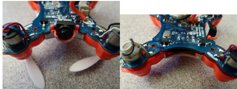 看起来很有趣:摄像头和microSD卡子系统与主板是分离的,只靠三根线连着(我猜:黑线是地线,白线是电源,橘红线是摄像头摄录使能/禁止和静止/视频模式选择的串行脉冲控制线)。理论上,至少这意味着CX-10的后续设计可以只使用主板,不再需要仅包含CX-10C增强功能的第二块板子了。