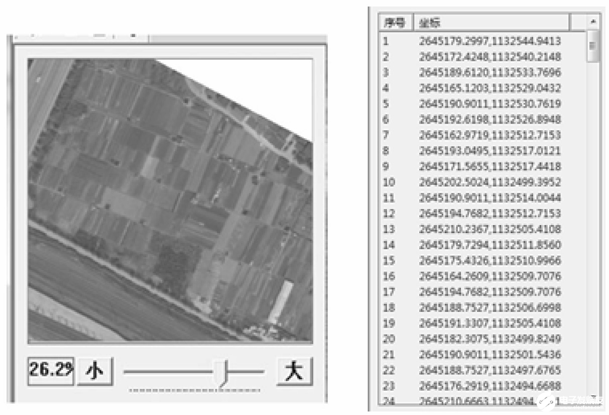 DSFire 软件分几个部分:图片导航器。导入图片后,可对图片进行整张浏览或局部细微观察,缩放自如(图 4)。图片地理位置自动匹配。通过对图片地理位置信息的自动判断,可匹配出图片相应的坐标(图 5)。火点及火灰斑点图片存档。可对疑似火点及火灰斑点图片自动标注坐标位置、火点燃烧面积,点位等信息,并自动存档。一般在航拍后 30 min 内即可提交分析成果,真正做到及时、准确、高效。