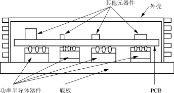 图1 电路框图 考虑到输出独立保护的要求,本电源采用了两路独立的电路结构,24V输出功率较大采用Forward,5V输出功率较小采用Flyback。 下面就电路中一些特殊的设计做一些介绍。 2 散热器设计 散热方式是电源产品设计中首先需要考虑的部分,因为,它关系着电路设计中元器件的选取,PCB的设计等一系列问题。通常的电源产品都采用风扇冷却,这样可以达到比较好的散热效果。 本文提到的军用车载电源,由于长期工作在震动和冲击的环境下,采用风扇冷却会影响电源系统的可靠性,因此,采用自然冷却的散热结构。整个装置的散热器结构安排如图2所示。功率半导体器件放在PCB板的背面并紧贴底板,直接通过底板散热,底板采用厚铝材料,整个装置安装在大铁板上(装甲车)。装置的两侧用带翼的散热片,兼起支撑作用。这样整个散热器的安排不但能达到比较好的散热效果,还可以充分利用PCB板的空间,一定程度上减少了整个装置的体积。