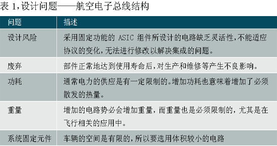 由于竞争的压力和对最佳战斗性能无止境的追求,军用航空电子从简单、独立的设备发展到如今以每秒百万位乃至更快的速度交换信息的高级智能系统网络。这也带来了必须克服的许多设计问题(见表1)。