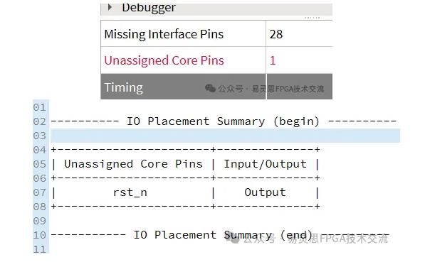 在placement下面的palce.rpt文件中搜索Unassigned Core Pins就可以看到。它说明这些管脚没有用于内部连接。