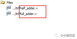 现在将.v文件综合一定会报错,因为还没有将half_adder模块添加进来。所以调用时找不到半加器的函数。因此需要将half_adder.v复制到文件夹中并添加到Files中: