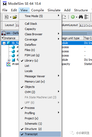 当端口多了之后,看波形相对不直观了,这里可以通过观察我们刚才打印的数据进行判断。通过View-transcript可以观察transcript窗口: