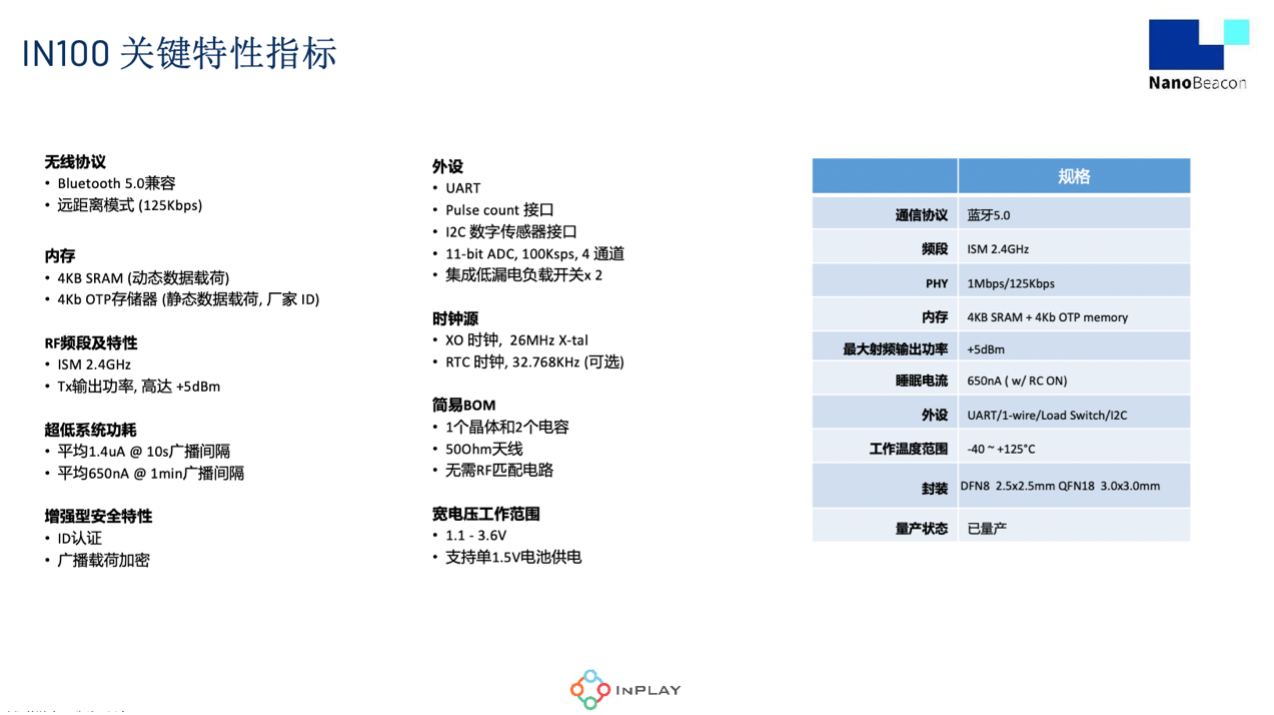 此外,IN100具备1.1V至3.6V的超宽工作范围,仅靠单个1.5V纽扣电池的驱动就能正常运作,低功耗的优势更是可以助其运行数年。
