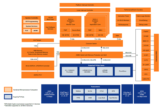 图:PolarFire FPGA SoC的功能模块框图(来源:Microchip的数据手册)