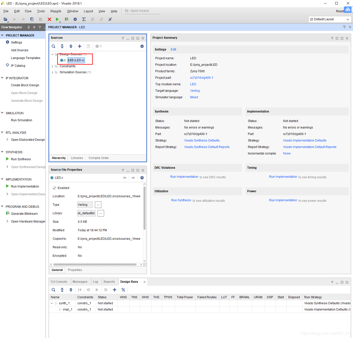 点击Run Synthesis综合工程,可能需要一分钟时间: